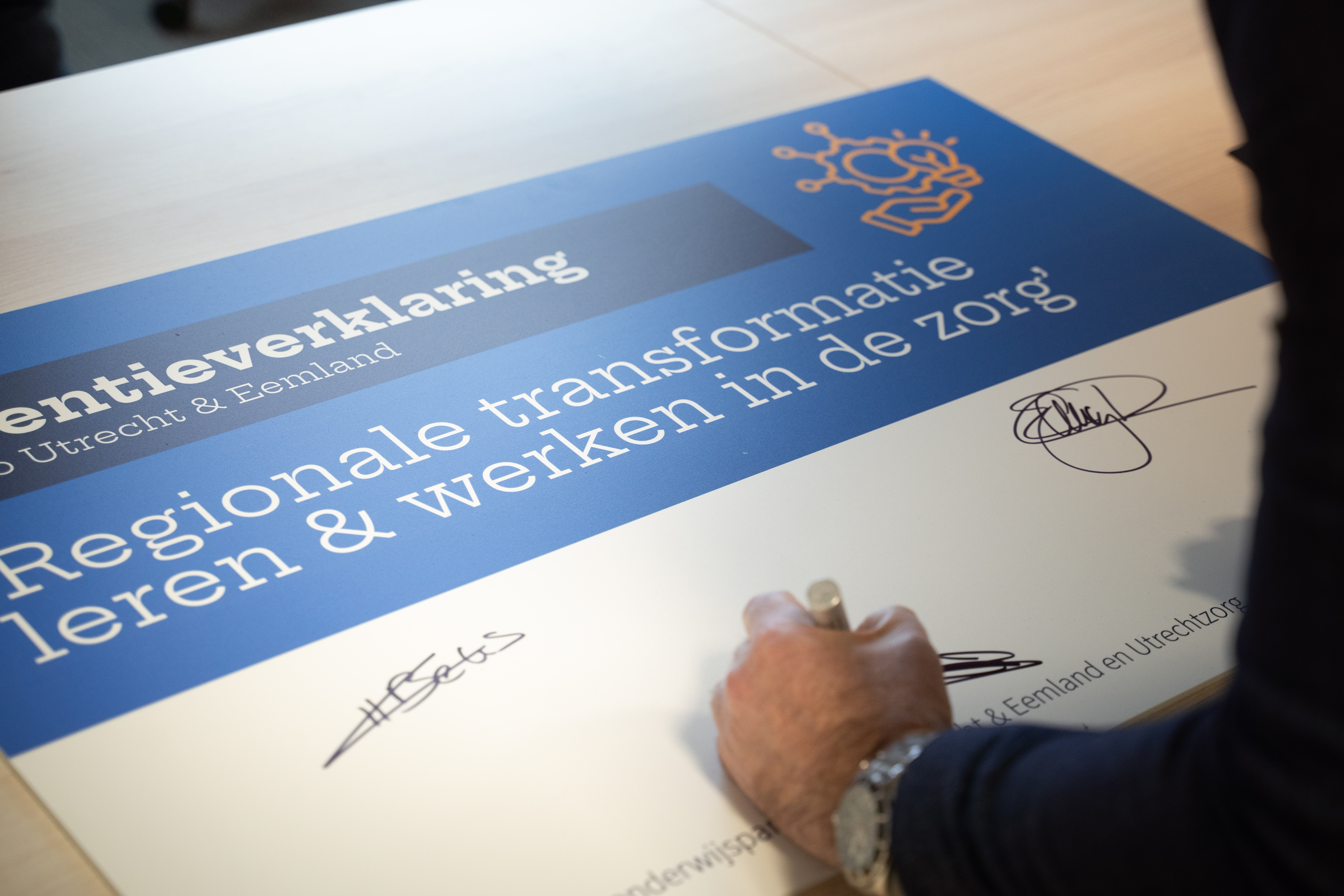 Daarom bundelen we samen met de ouderenzorgorganisaties verenigd in de IVVU, onderwijsinstellingen in de regio Utrecht en Eemland en werkgeversorganisatie Utrechtzorg de krachten. Om deze nieuwe samenwerking te onderstrepen is op 17 december de intentieverklaring ‘Regionale transformatie leren & werken in de zorg’ ondertekend.